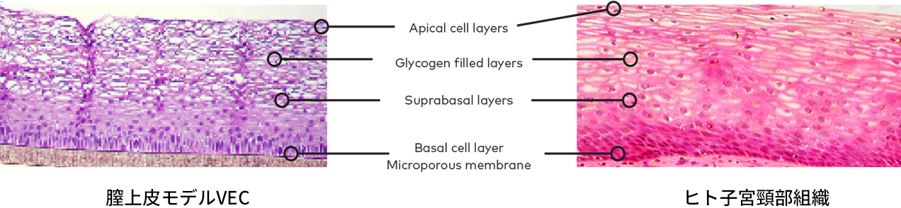 VEC-100は角化していない10-16層の多層構造を有します。