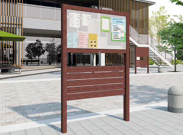 クラティスエコは基材がアルミのため容易に切断、穴あけ、組立加工ができ、様々な断面形状を組み合わせることでオリジナル機能門柱の設計が可能です。また、集合住宅の館名板や掲示板への応用もでき、フェンスやルーバーなどを含めたトータルコーディネートもご提案可能です。
