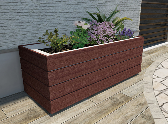 商業施設、公共施設、住宅など様々な外構シーンで自然に調和した空間をご提案いたします。木質感のあるテクスチャーは植栽の緑ともマッチし、フェンスは組立ねじが極力見えないよう細部にまで配慮したオリジナル設計でアクセントポールは端部キャップの一体感ある自然な納まりが特長です。