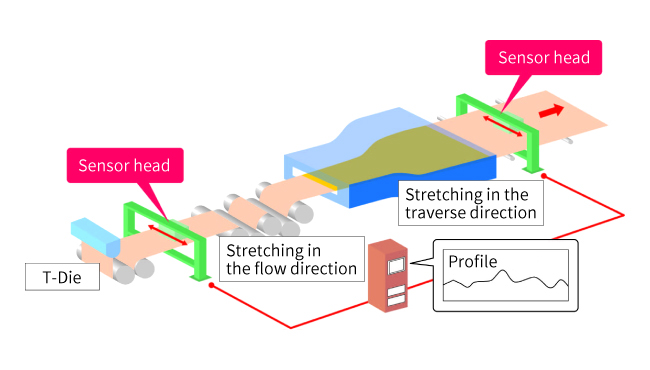 High-precision thickness information that the T-die requires to control thickness is provided.
