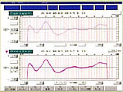• ・Monitor screen that displays thickness distribution across the traverse direction/machine direction.