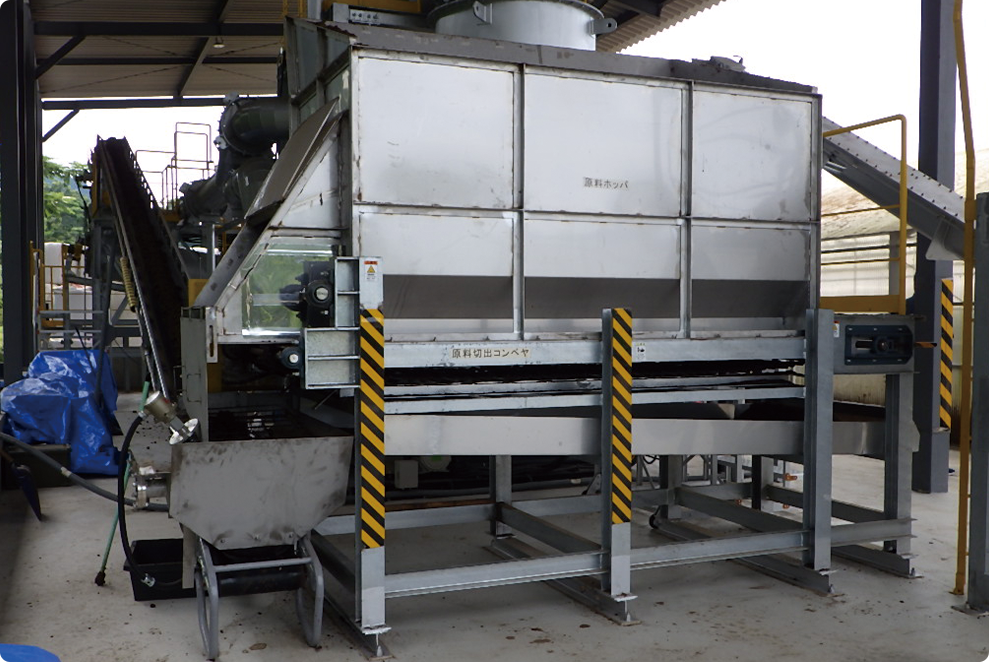 糞尿を含む使用済み敷料を牛舎から回収し、原料ホッパに投入します。
