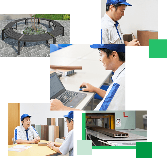 次の目標は、より付加価値の高い建材を開発すること。木粉の代わりに、別の再生素材を使用すれば、新しい機能を持つ建材がつくれるかもしれません。以前、茶殻を使ってみたところ、実際に消臭効果が!他にも、虫よけ効果がある建材ができればデング熱の予防につながるし、緑化植物やコケが自生する建材ができればヒートアイランド現象の抑制など、もっと環境に貢献できるはず。まだ夢の段階ですが、何度失敗しても挑戦しつづけて、ぜひ実現したいですね。