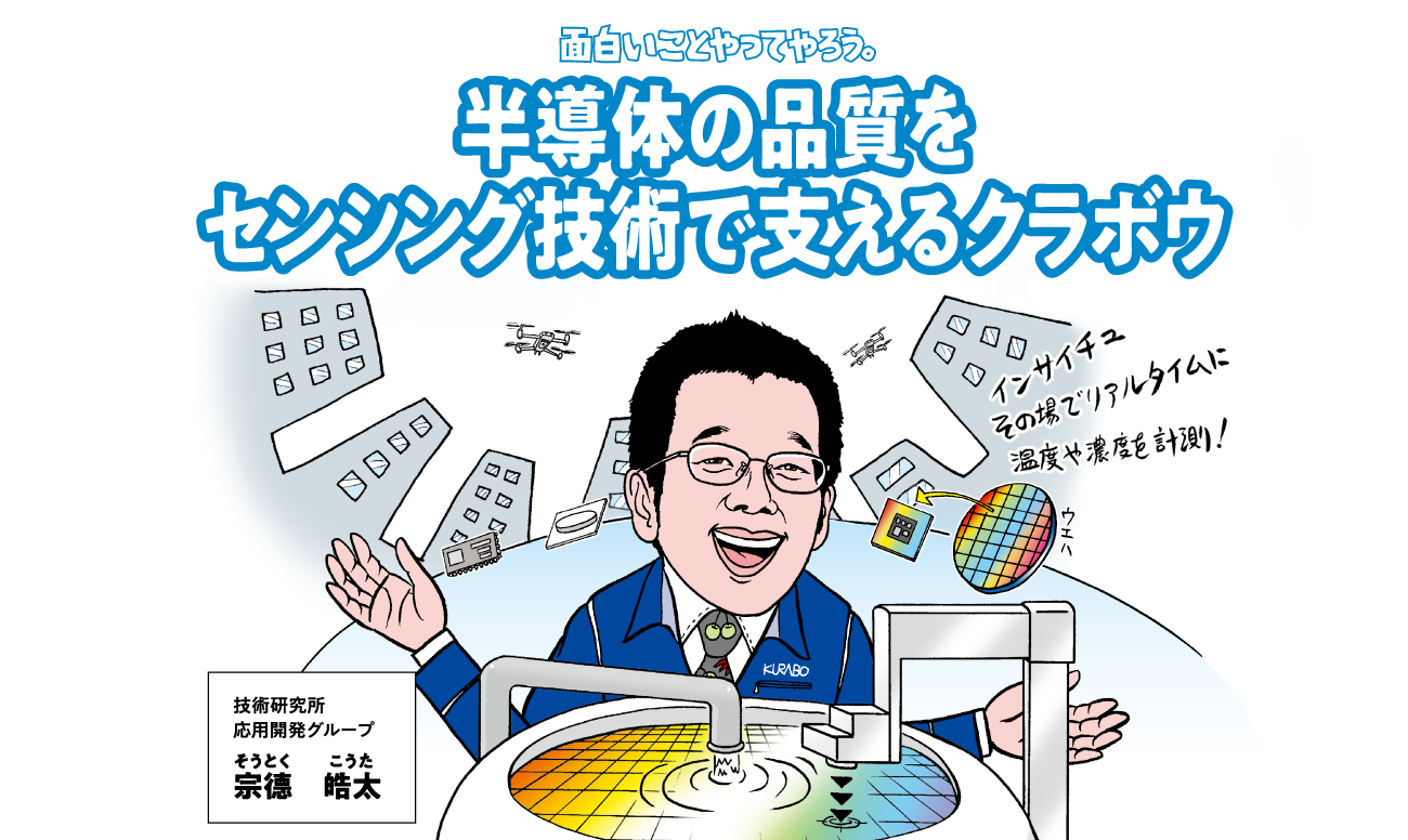 そこでクラボウは、赤外線などの光を利用した独自のセンシング技術を応用し、「In-Situ(インサイチュ)」と呼ばれる半導体製造装置内のウエハを薬液で洗浄しているその場でリアルタイムに計測するシステムを開発。半導体製造現場の夢だったインサイチュ計測技術を業界に先駆けて実現しました。
