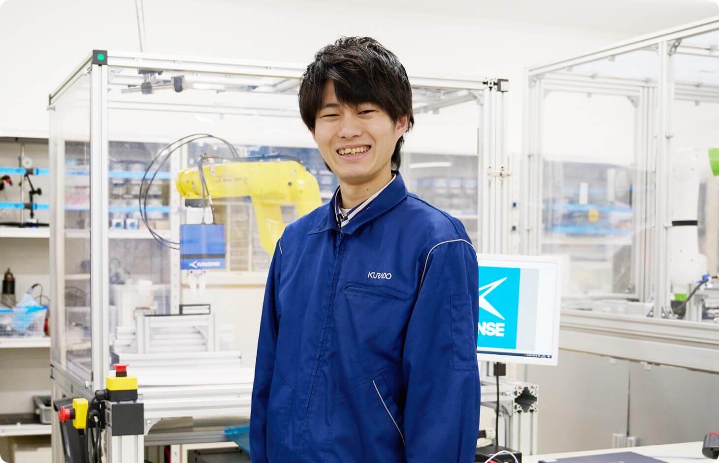 岡山県出身なので、クラボウという社名自体は聞いたことがありました。就職活動中、地元の企業ということで興味本位に調べたところ、ロボット関係のビジネスを行っていることがわかり驚きました。私は高校生の頃からロボットに興味を持っており、大学では機械システム工学を専攻、サークル活動もロボット研究会に所属していたからです。さらに詳しく事業内容を見ていくと、ロボットによる作業の自動化という、まさに私がやりたかった仕事にマッチすることが判明。最終的には、希望していた研究開発に携われることが決め手となり、入社を決意しました。